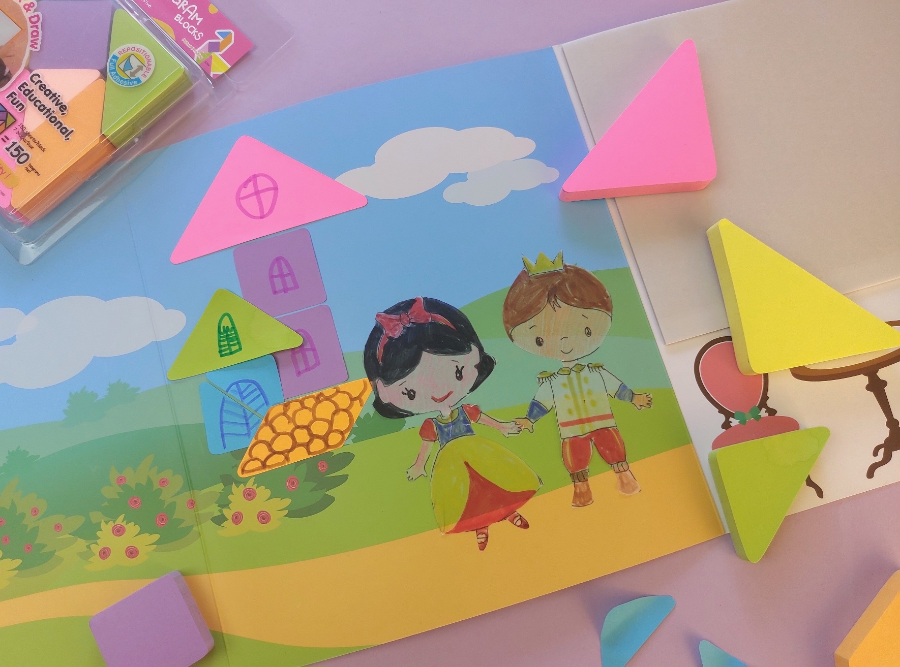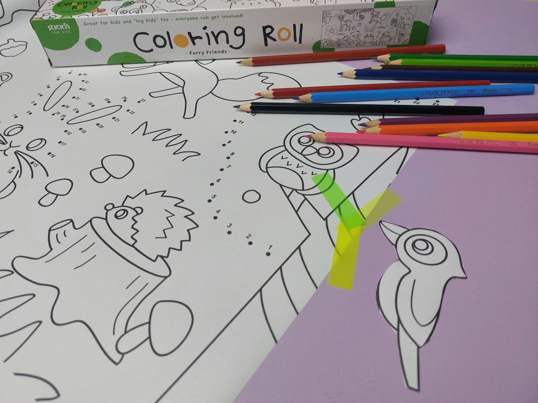 A kisgyerekes családok gyakori problémája, hogy a rajzlap hamar betelik, az ihlet kifogy, és nekünk épp nincs időnk, hogy leüljünk közösen rajzolni. Ilyenkor jön jól egy színező, pláne ha rendkívül hosszan használható és már önmagában is játékélményt nyújt. A Stick’n színezhető tekercsei vidám mintákkal és történetekkel hívják játékra a gyerekeket: akár az asztallapra vagy a padlóra terítve is belevethetik magukat a színezésbe és ha betelt, máris kiguríthatjátok az újabb adagot. Egy "végtelenített" színezővel megkönnyíthetitek az étkezés előtti várakozást, a kész háttereket pedig bevethetitek mindenféle szerepjátékhoz is meglévő játékaitokkal. Meséljetek el egy-egy történetet, főszerepben a tekercsen látható figurákkal - így a kreatív idő egyben némi kapcsolódási lehetőséget is jelent.