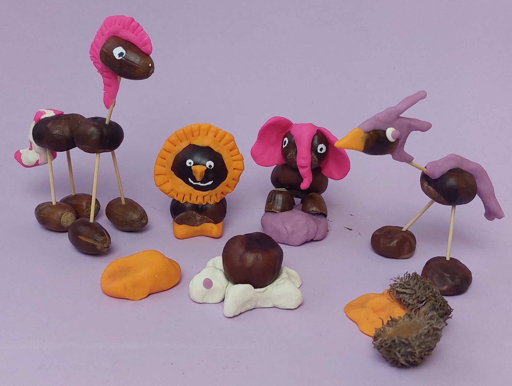 Gyurma és gesztenye – kreatív páros a színes állatkerthez