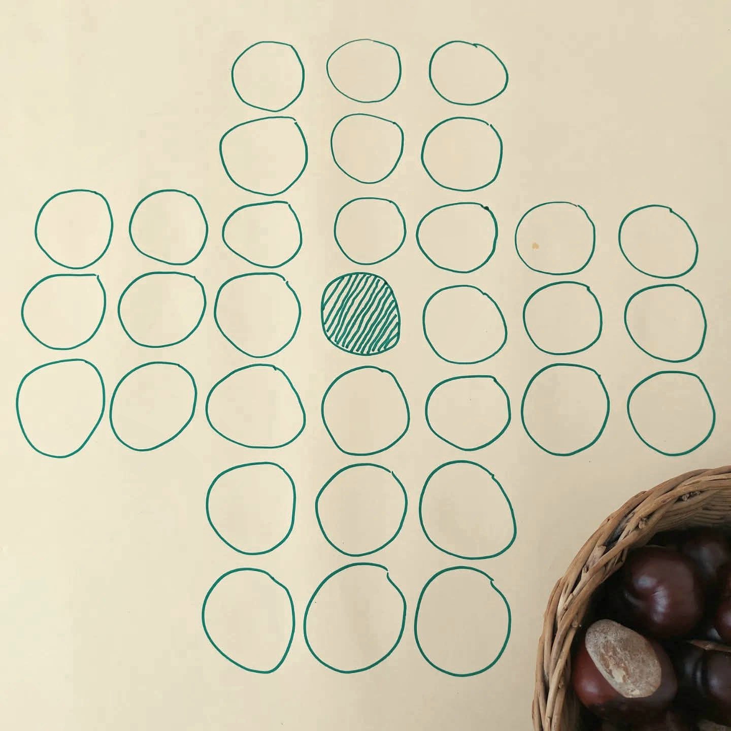 Ha a nagyobbacska gyerekek a gesztenyefigurák tervezésénél már nagyobb kihívásokra vágynak, bedobhatjuk nekik ennek az igazán egyszerűen elkészíthető, ám annál szórakoztatóbb játéknak az ötletét! A szoliter játék egy izgalmas fejtörő, ami fejleszti a logikai gondolkodást, türelemre tanít, és akár egyedül is remek szórakozást nyújt a hűvös őszi délutánokon. Egy ív papír és 32 gesztenye felhasználásával percek alatt összedobhatjátok!